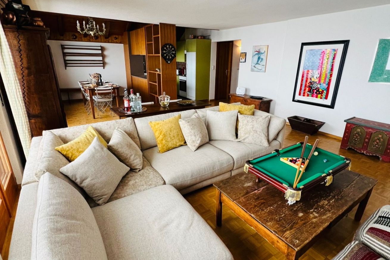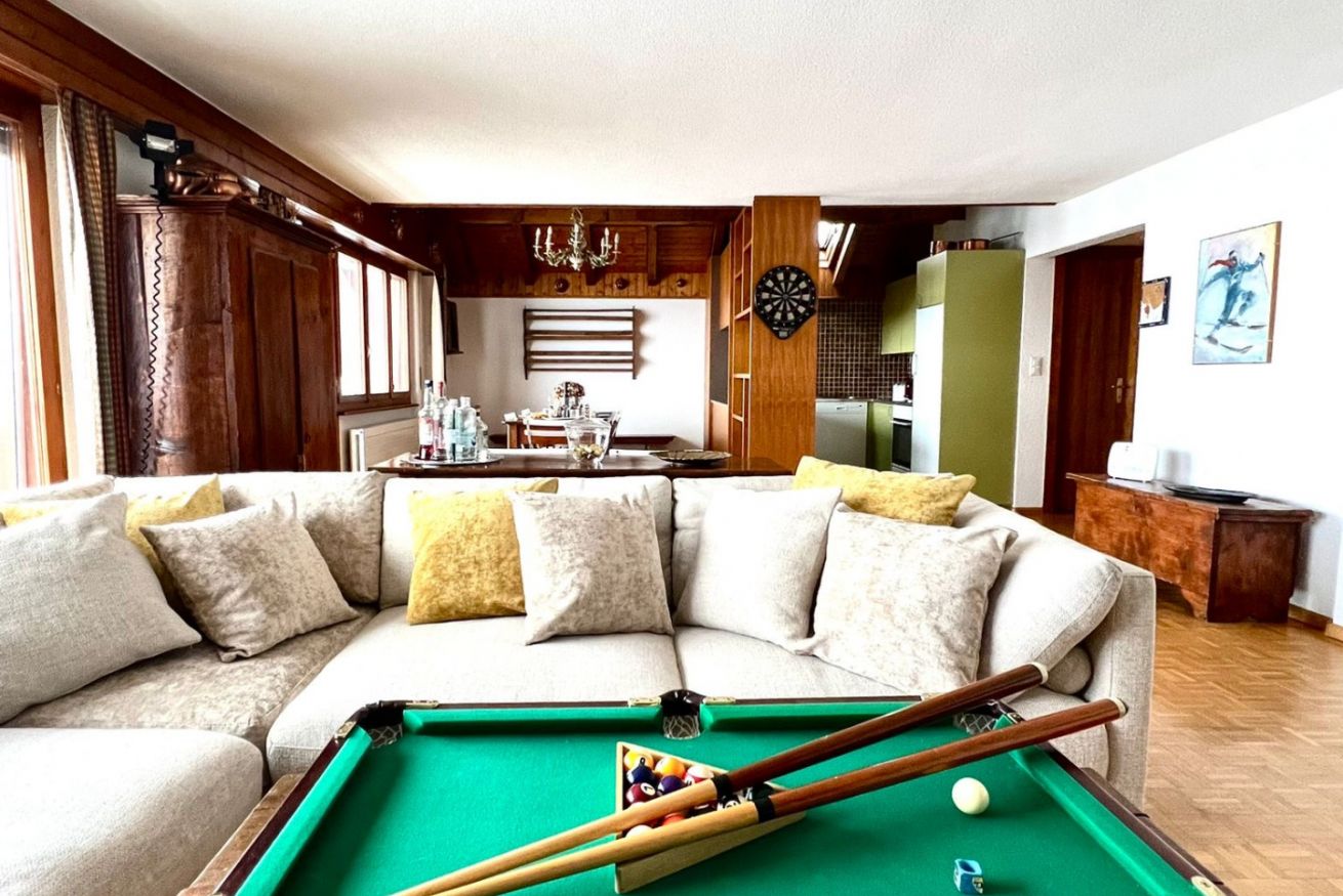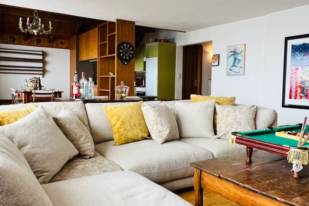 Uno spazioso duplex, situato al 4° e 5° piano, offre una vista panoramica indimenticabile sulle maestose Alpi Bernesi, offrendo un'esperienza unica.