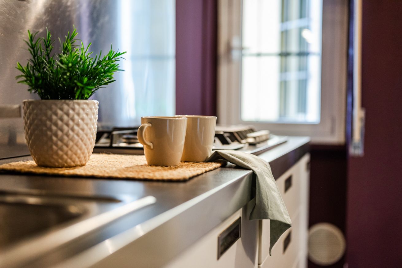 - Cucina completamente attrezzata per preparare i vostri piatti preferiti (forno, microonde, bollitore, tostapane, padelle e pentole, piatti e posate, bicchieri, tazze, essenziali per cucinare, macchina del caffè con capsule omaggio)