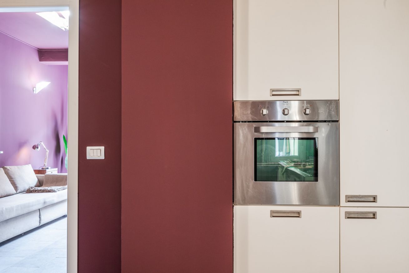 L’appartamento si trova al terzo piano con ascensore ed è caratterizzato da spazi ampi e accoglienti, valorizzati da pareti e soffitti dai colori decisi e da carta da parati di design, che creano un’atmosfera calda e distintiva. Dalle camere si accede a un piacevole balcone, perfetto per momenti di relax.