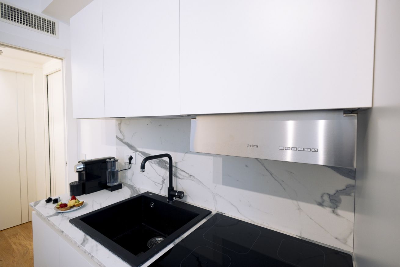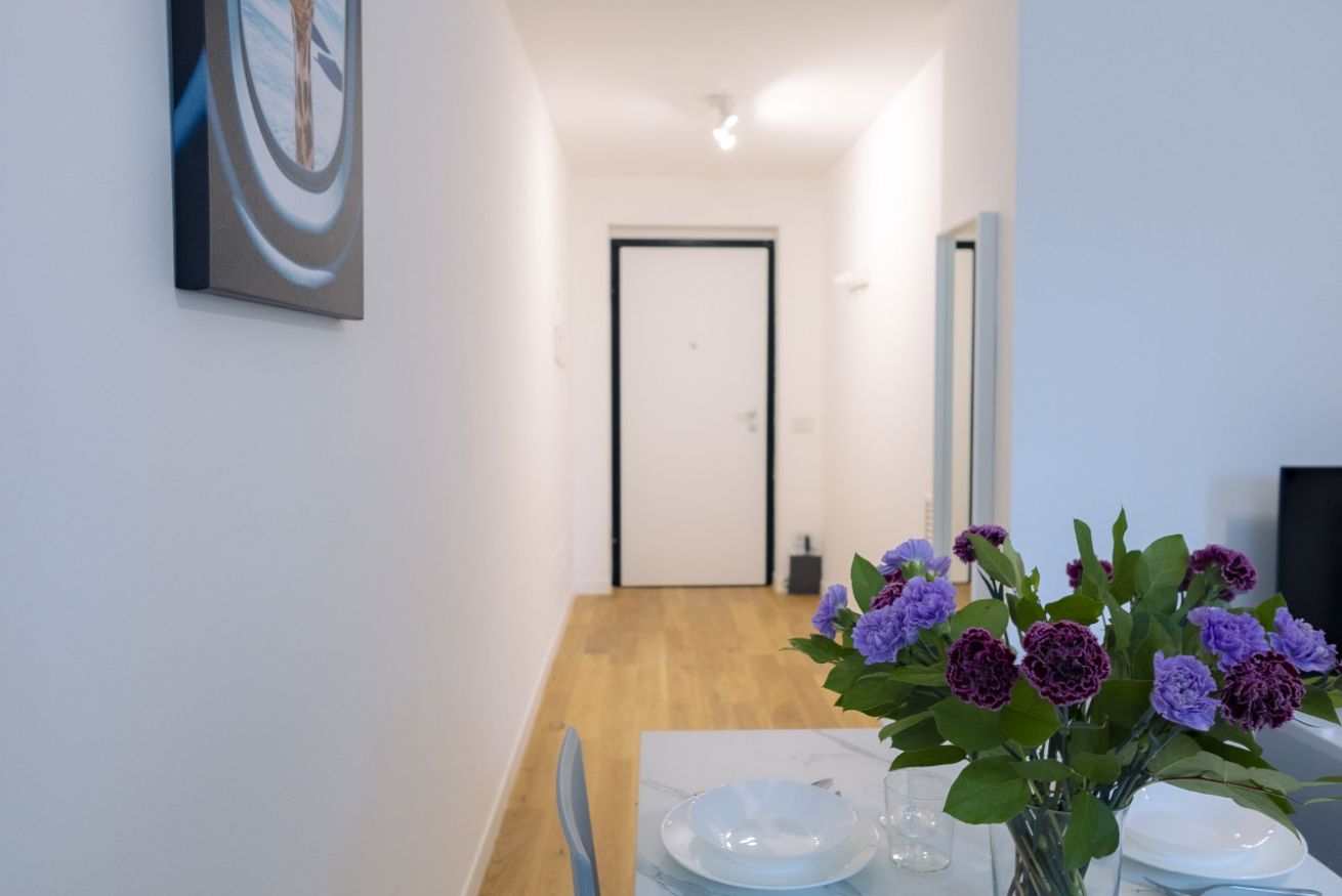 Entrando percorrerete un lungo corridoio che vi condurrà alla zona giorno con cucina a vista attrezzata e divano letto. Avrete a disposizione due camere da letto e un bagno moderno con doccia.