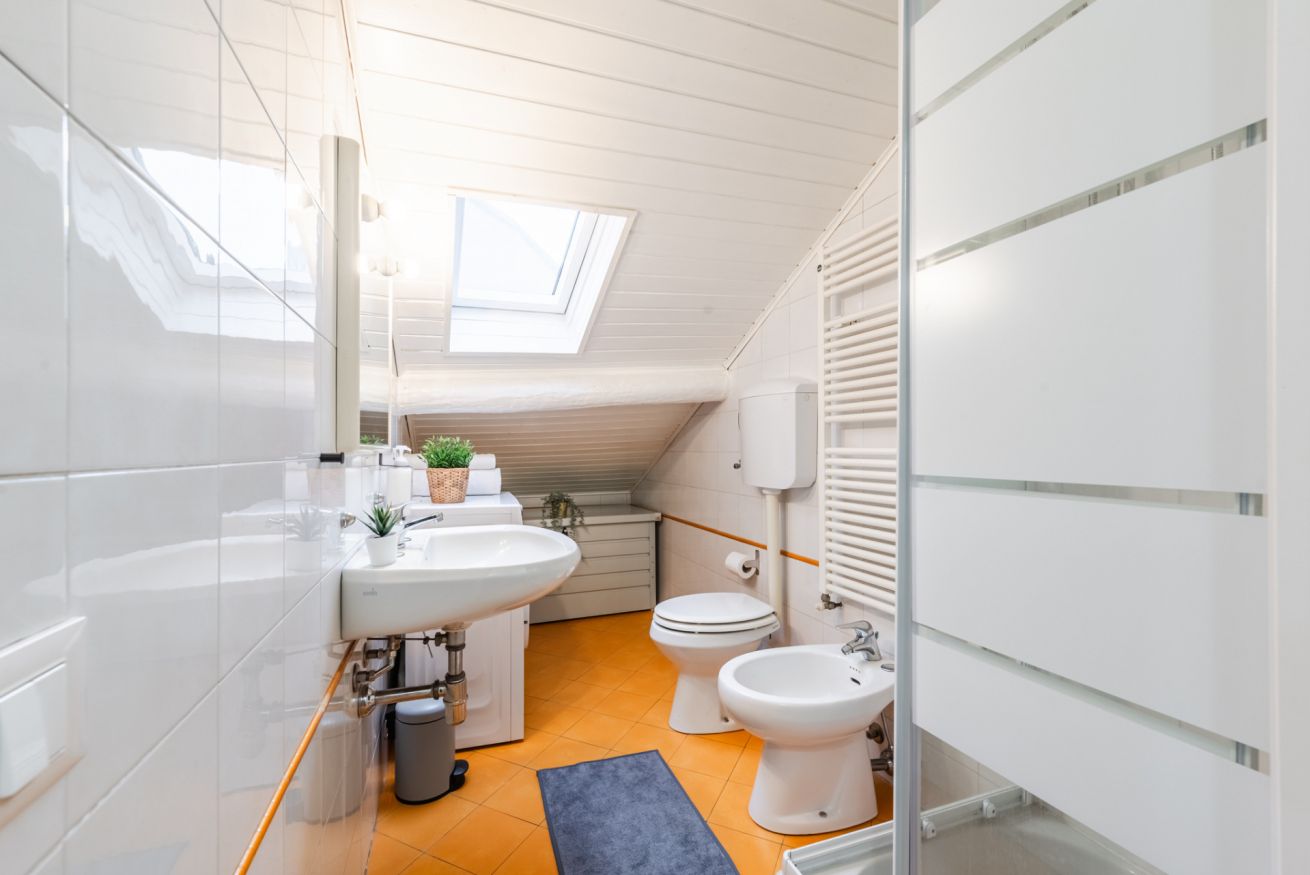 ・Bagno finestrato con box doccia e lavatrice